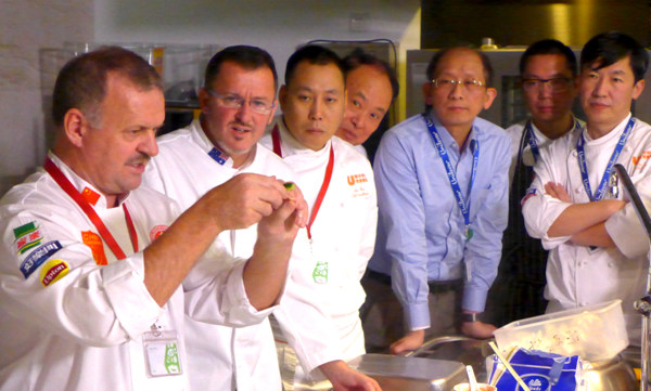 12月12日-13日,中國國家烹飪隊總顧問、世界廚師聯合會亞洲區主席里克也來到上海,在國家烹飪集訓隊駐地,對“2015中餐烹飪世界錦標賽”中國國家集訓隊參賽情況進行回顧和總結,提出階段性訓練方向,對2016國際奧林匹克大賽注意事項進行了細致的講解,親自動手進行了菜品上膠的教學展示。中國烹飪協會邊疆副會長、聯合利華飲食策劃中國區陳意星總裁、中國烹飪大師李耀云、葛賢萼、中國烹飪協會國際賽事總監朱一帆、中國烹飪協會副秘書長張大海及教練組全體成員出席了此次國家隊集訓活動。